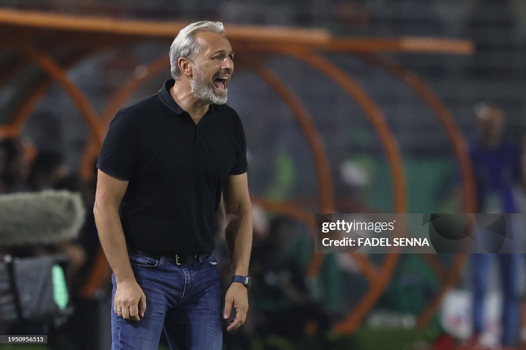 DR Congo's French head coach Sebastien Desabre shouts instructions to his players from the touchline during the Africa Cup of Nations (CAN) 2024 group F football match between Tanzania and Democratic Republic of Congo at the Amadou Gon Coulibaly Stadium in Korhogo on January 24, 2024. (Photo by Fadel Senna / AFP) (Photo by FADEL SENNA/AFP via Getty Images)