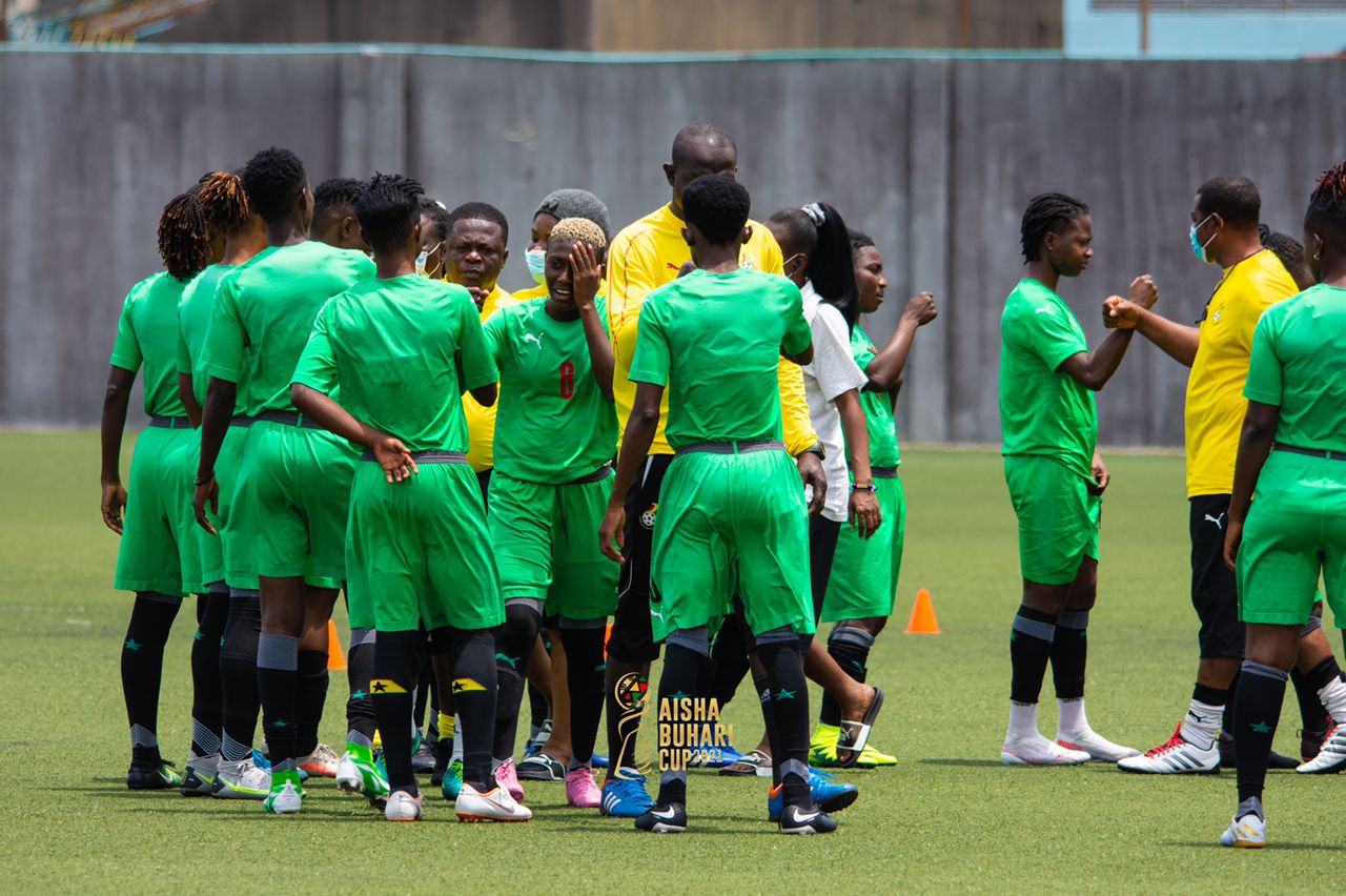 Ghana’s Black Queens held their first training session at the Legacy Pitch, Surulere on Tuesday to kick off their pre-match preparations for the Aisha Buhari Cup.