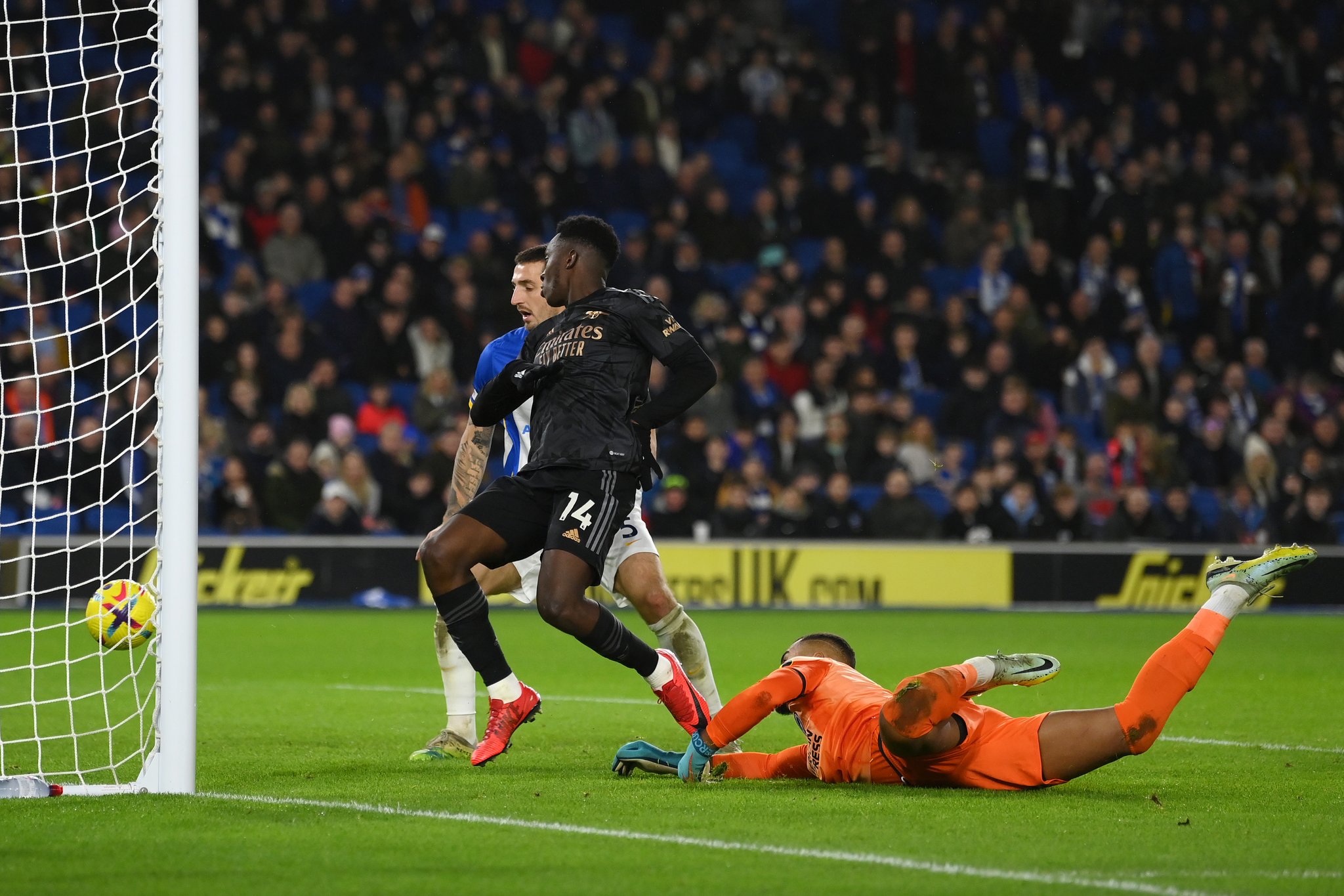 Nketiah found the net as Arsenal clinched a 4-2 victory over Brighton to move seven points clear at the top of the table.