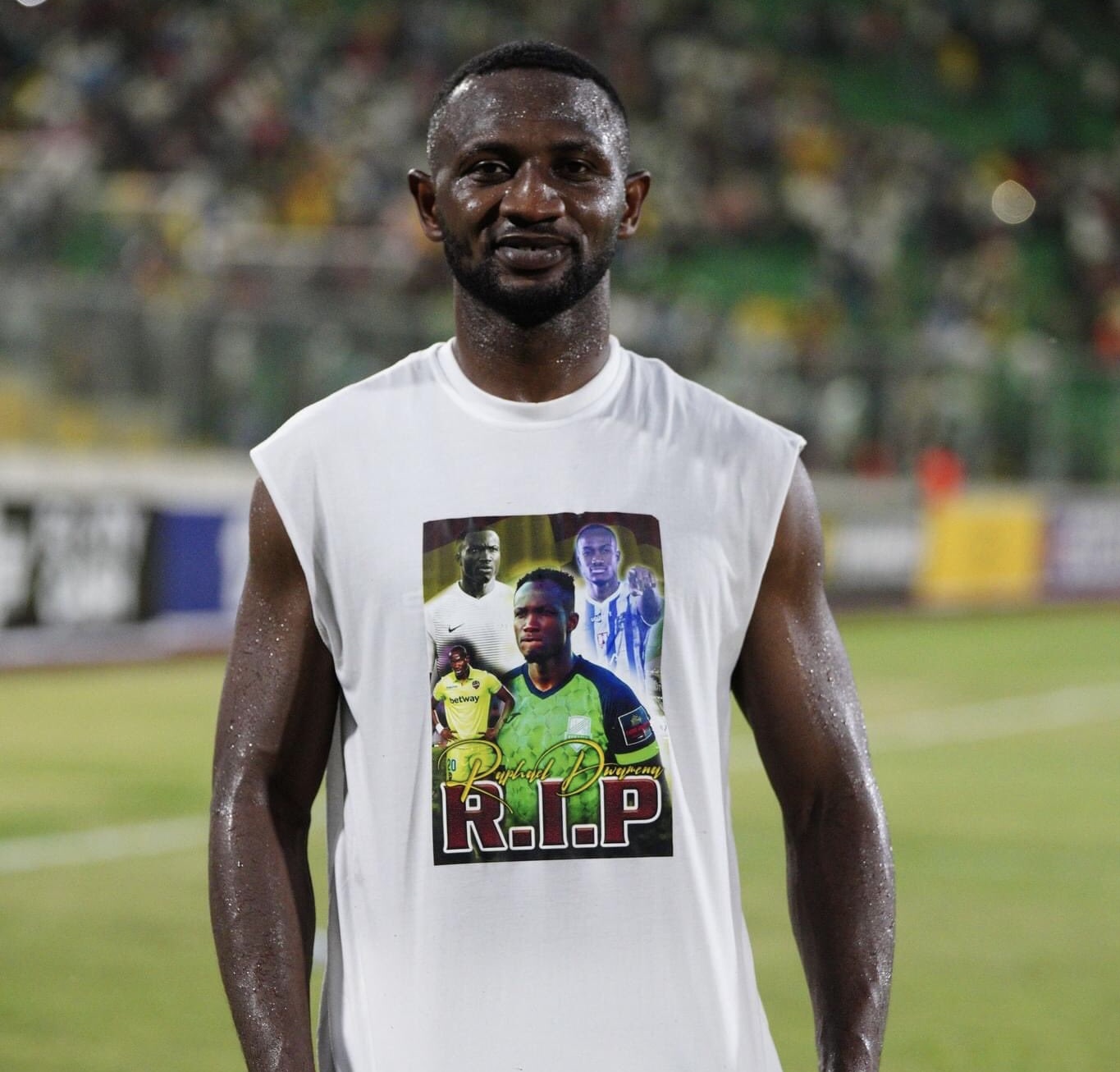 The Amiens center back, who played the full 90 minutes, wore custom innerwear adorned with pictures of Dwamena and the caption “RIP Raphael Dwamena.”