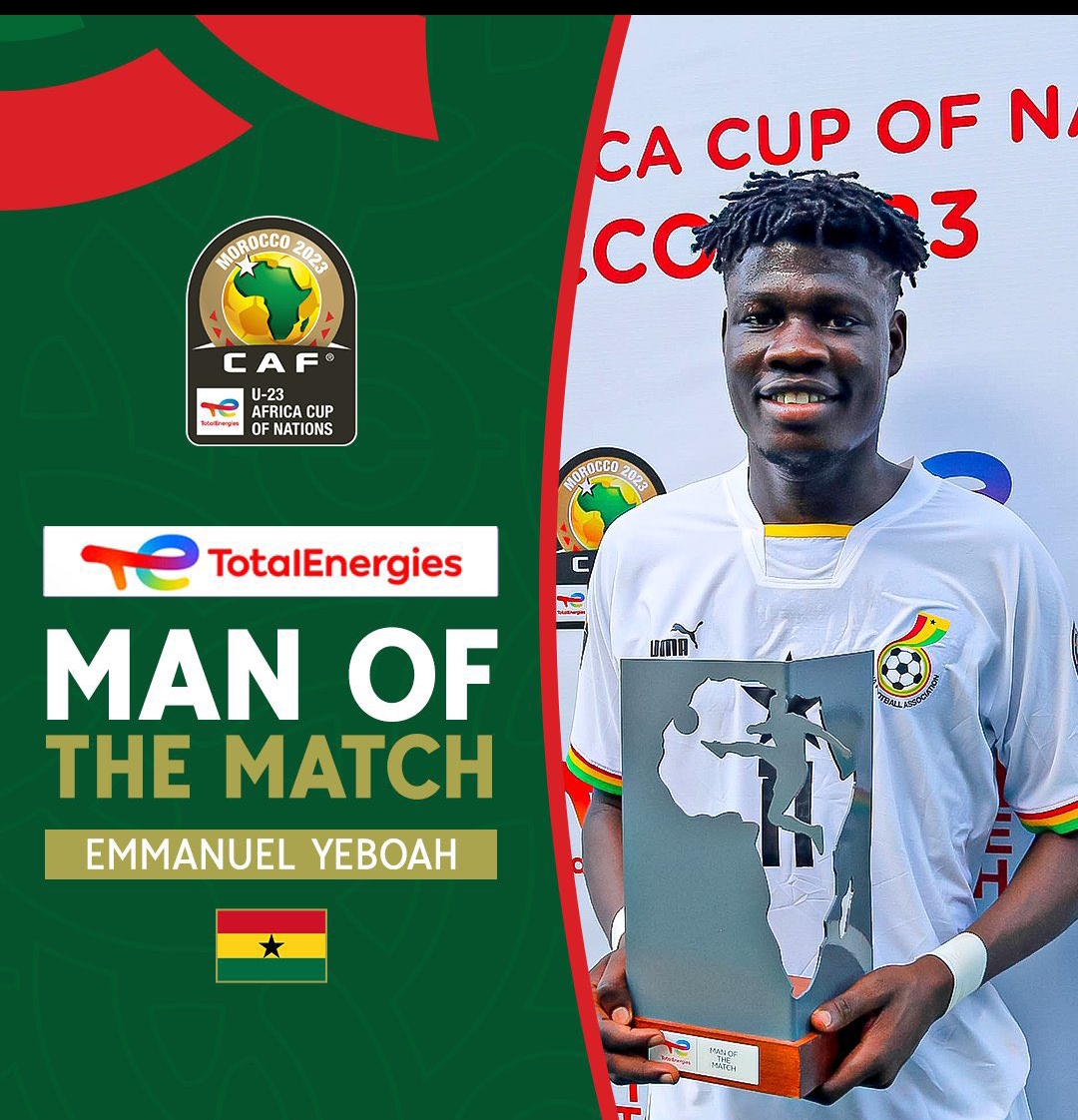 Ghana’s Black Meteors striker Emmanuel Yeboah was named Man-Of-The-Match in his first game at the 2023 CAF U-23 Championship in Morocco on Sunday, June 25 in Rabat.