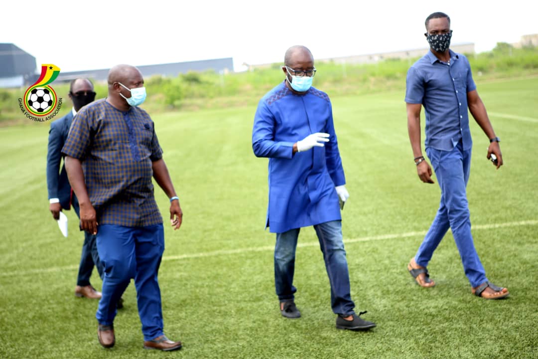 GFA President Kurt E.S Okraku, on Tuesday May 12, 2020 toured the Ghanaman Soccer Centre of Excellence at Prampram to inspect the progress of work done at the facility which has been made available to government for use as isolation centre.
