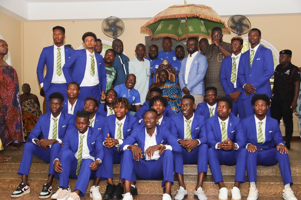 Dreams FC and Medeama, suited and booted, paid a courtesy visit to the famous Manhyia Palace to announce their presence to the Asantehene for his blessings and recognition in the capital city of Asanteman.