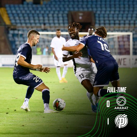 Ghanaian striker Eric Ocansey played 86 minutes in Ararat Armenia’s 1-0 defeat to Puskas FC Academy during their UEFA Conference League Qualification Round 3 match on Thursday evening.