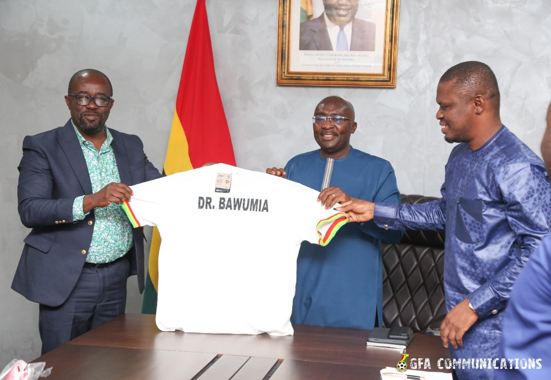 President of the Ghana Football Association, Kurt Okraku has presented a Black Stars jersey to Vice President of Ghana, Dr. Bawumia ahead of the country’s World Cup qualifiers.