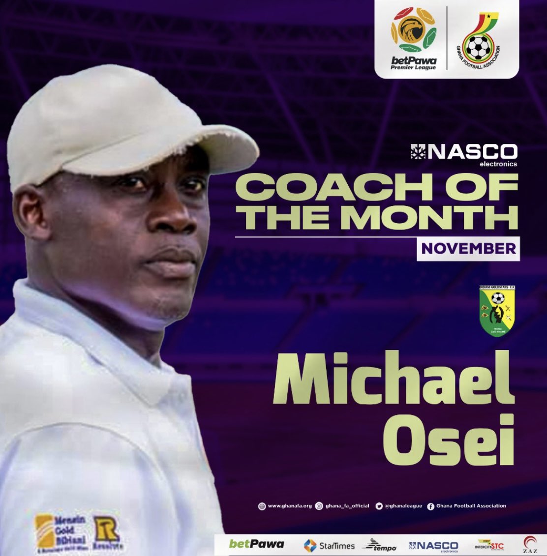 Bibiani Gold Stars head Coach Michael Osei has won the NASCO coach of the month for the month of November.