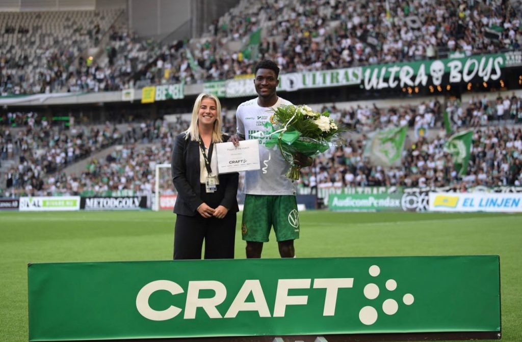 Ghanaian promising defender Nathaniel Adjei has earned a spot in the Swedish Allsvenskan Team of the Week following his outstanding performance Hammarby IF over the weekend.