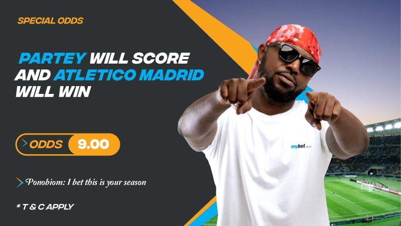 The sportsbook giant, mybet.africa is offering a huge odds of 9.00 on Partey to score and Atletico to win the match.