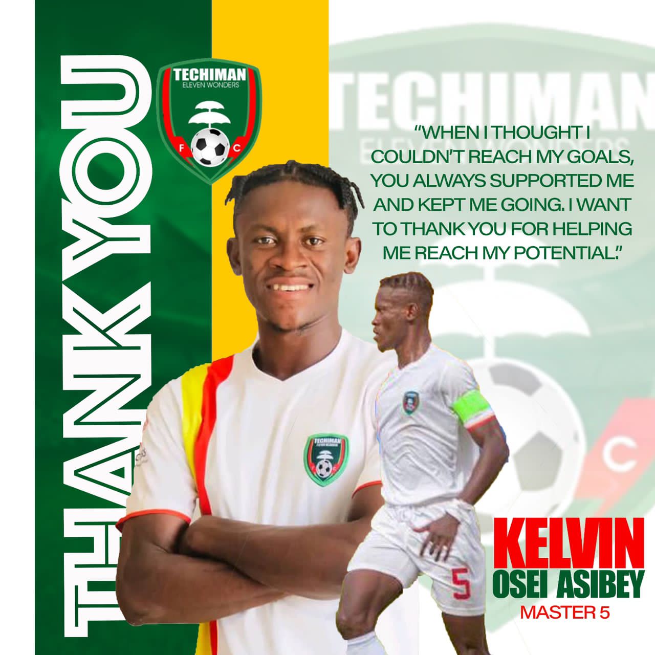 In a statement, Osei Asibey expressed his appreciation, saying, “When I thought I couldn’t reach my goals, you always supported me and kept me going. I want to thank you for helping me reach my potential” a statement from the player reads as he bids farewell to the Techiman-based club.