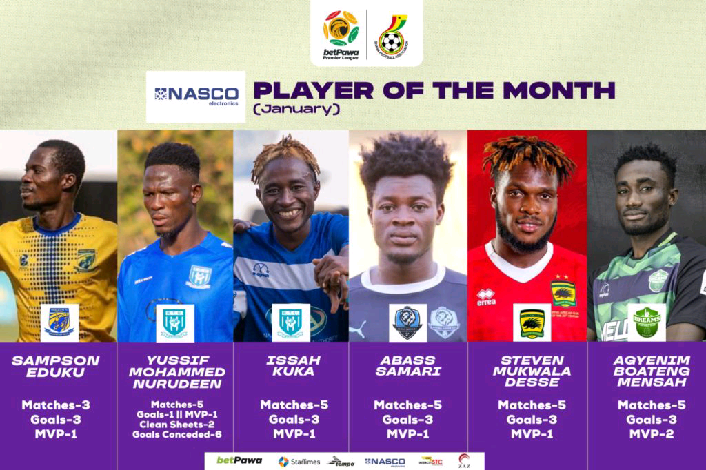 Abass Samari of Accra Lions FC, Asante Kotoko SC’s Steven Mukwala Desse and Agyenim Boateng Mensah of Dreams FC are the other three.