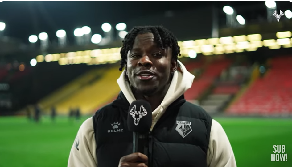 Watford forward Kwadwo Baah will be out of action until “early in the new year” after suffering a hamstring injury during the 3-2 win at Derby County on Saturday.