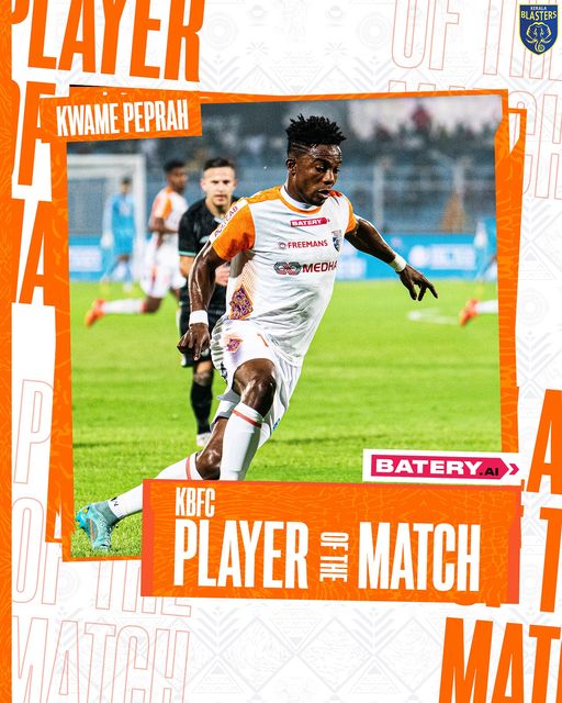 Peprah’s vital contribution earned him the Man of the Match honor, and Kerala Blasters now prepare for their next fixture against Bengaluru FC on October 25th.