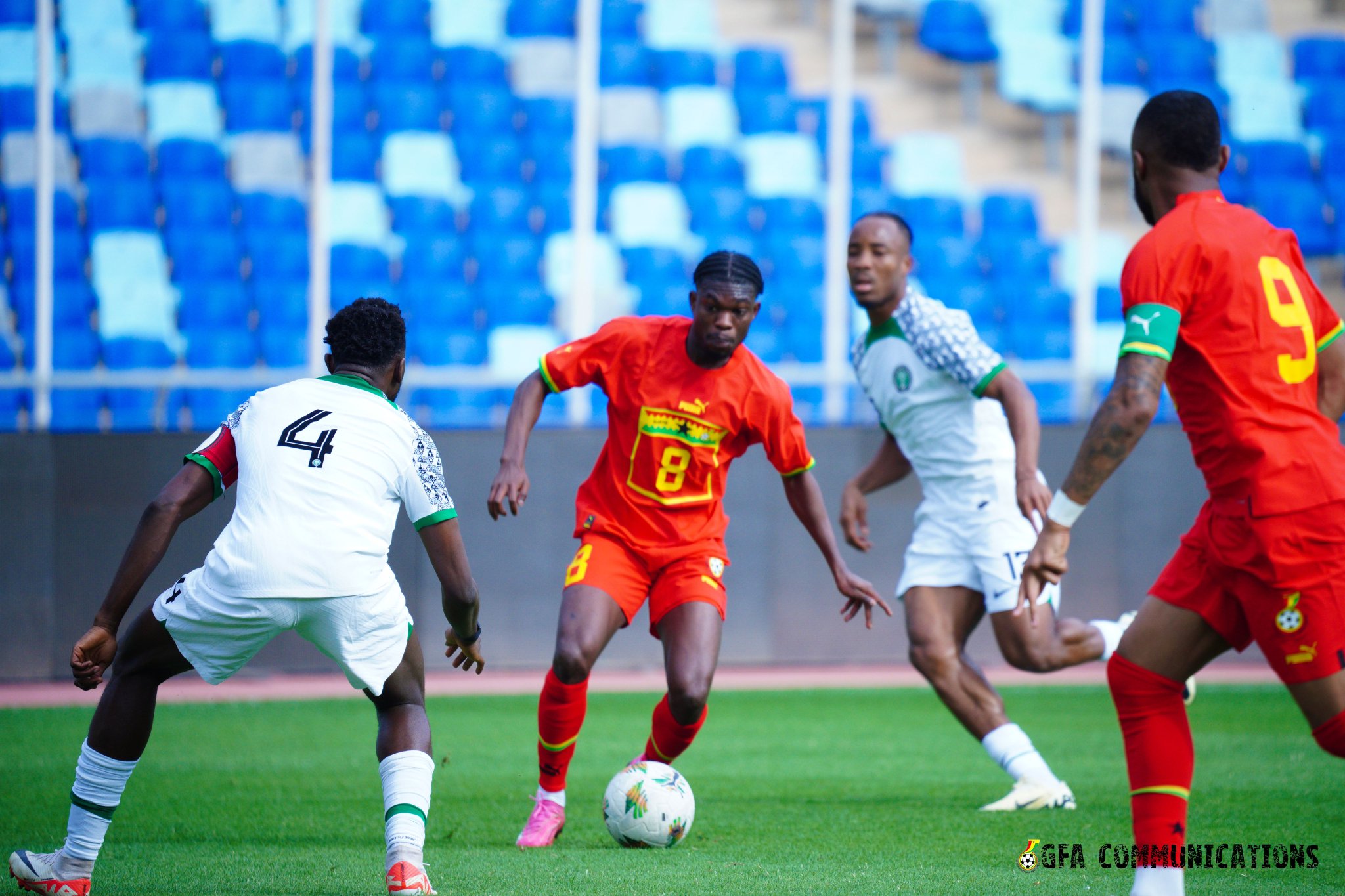 Ghana Black Stars are engaging the Super Eagles of Nigeria in an international friendly at the Stade de Marrakech in Morocco.