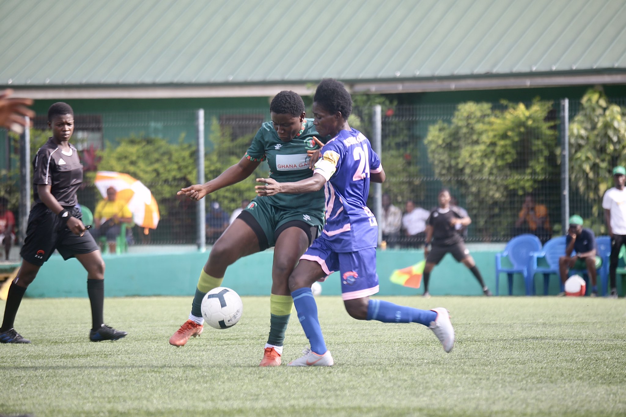 Ghanaian star Mukarama was fouled on the edge of the box inside the 48th minute, providing an advantage for Hasaacas Ladies, who capitalized on the opportunity and slotted home the opening goal.