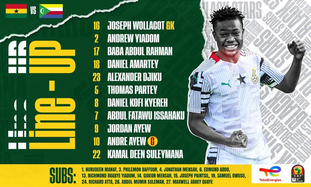 Below is Ghana line up to play against Comoros:
