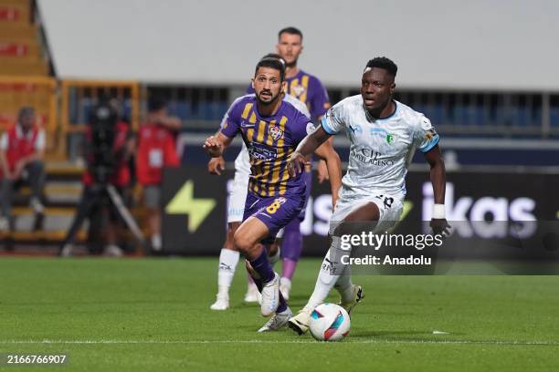 ISTANBUL, TURKIYE - AUGUST 19: Emre Akbaba (8) of Ikas Eyupspor in action against Musah Mohammed (R) of Sipay Bodrumspor during the Turkish Super Lig week 2 football match between Ikas Eyupspor and Sipay Bodrumspor at Recep Tayyip Erdogan Stadium in Istanbul, Turkiye on August 19, 2024. (Photo by Adem Kutucu/Anadolu via Getty Images)