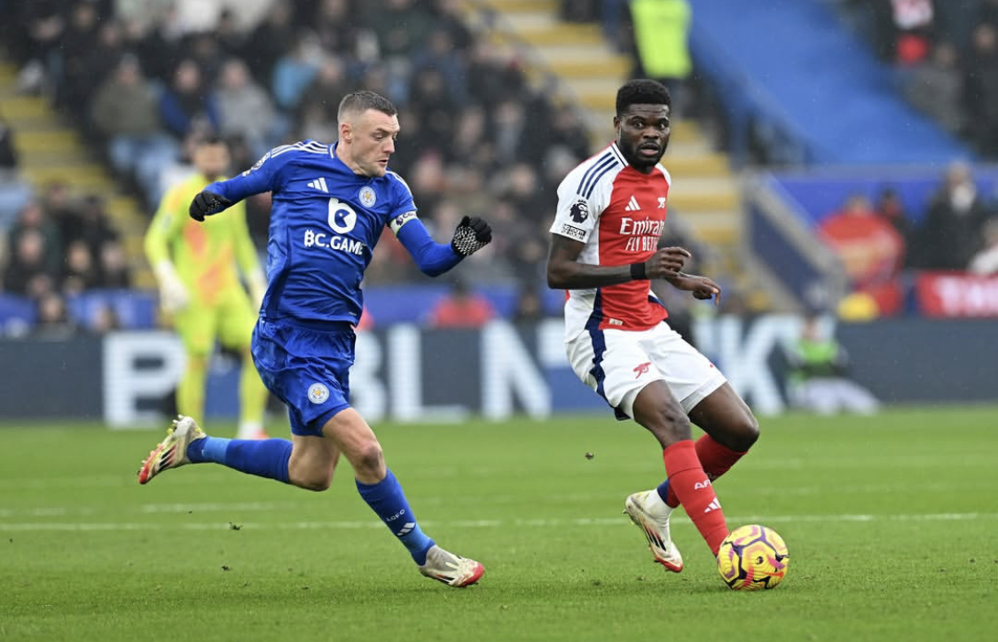 Thomas Partey played a crucial role in Arsenal’s hard-fought 2-1 victory over Leicester City at the King Power Stadium, as the Gunners kept their Premier League title hopes alive.