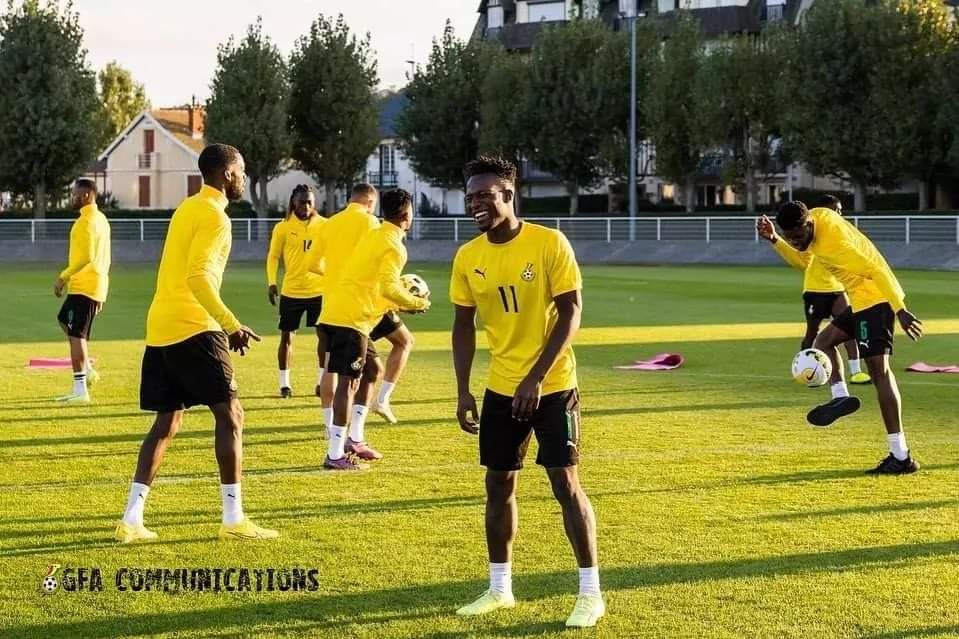 The Ghanaian players arrived on Monday in France and held their first training session as they prepare to take on Brazil at the Stade Oceane in Le Havre September 23.