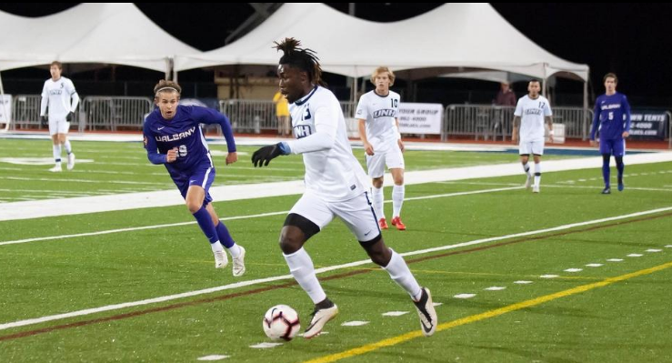 Impressed with his athleticism, coach Marc Hubbard and the UNH men’s soccer program extended a roster spot to Sackie for his final two years of NCAA eligibility.