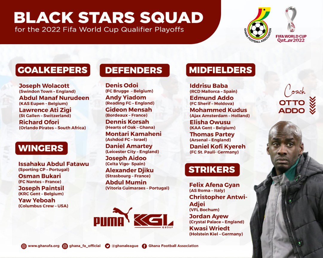 Meanwhile on Tuesday Ghana coach Otto Addo and the Ghana FA announced a 27-man squad to face the Super Eagles.