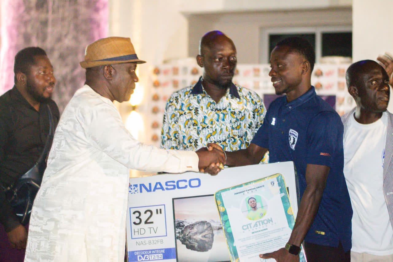 These remarkable achievements culminated in Seth Kwadwo being honored as the Most Valuable Player (MVP) during Bechem United’s end-of-season awards ceremony, held last Saturday night. Club President Kingsley Owusu Achaw congratulated the young midfielder and presented him with a citation, a generous prize in the form of a NASCO television, and other incentives. These rewards serve as motivation for both him and his teammates to continue their hard work and dedication in the upcoming season.