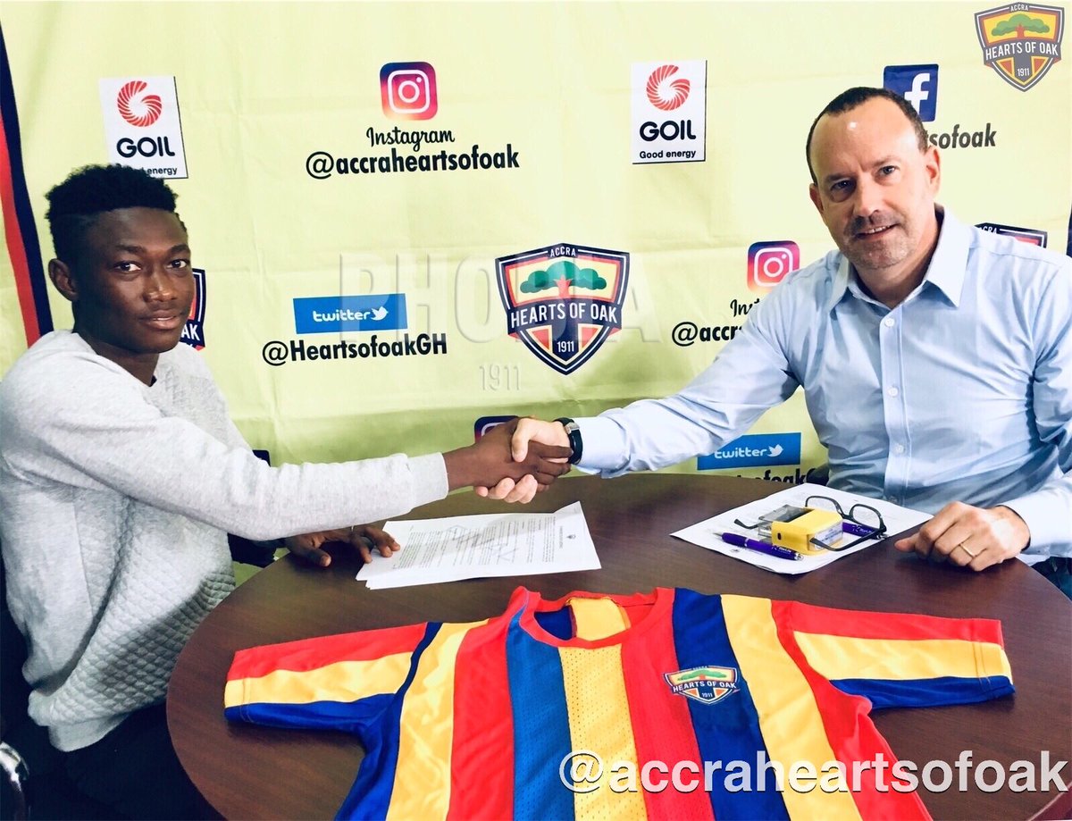 “Manaf Abdul Gumah of Auroras has signed his first professional contract with Hearts of Oak” the club tweeted.